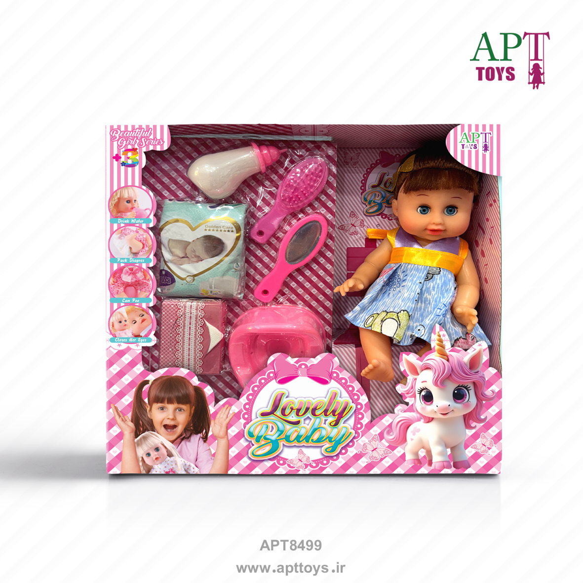 عروسک بیبی یک دختر کوچولوی خوش پوش با موهای بلند و زیباست که تل سر زیبایی هم رنگ لباسش بر روی سر دارد. این عروسک موزیکال مانند یک کوچولوی واقعی چشمانش را باز و بسته می کند. می تواند شیر بخورد و جایش را خیس می کند.